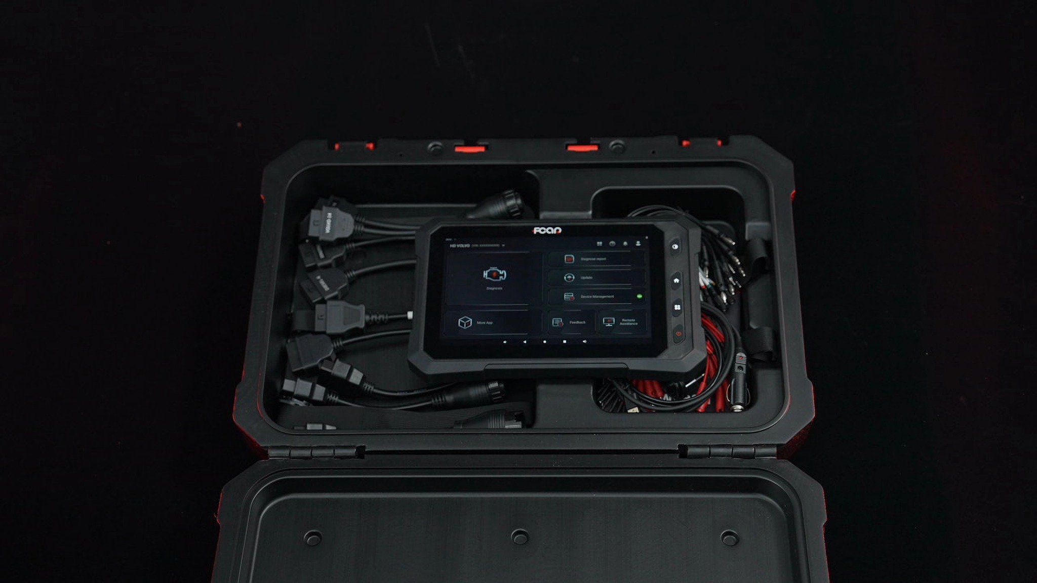 FCAR F9S-D — профессиональный мультимарочный диагностический сканер для грузовиков, коммерческой техники и спецмашин. Портативный 10,1-дюймовый планшет на Android 11 с интегрированным AI-помощником DeepSeek, поддержкой более 45 марок (MAN, Volvo, Scania, XCMG, Sany, Howo, KAMAZ и др.), функциями кодирования и программирования ЭБУ, защитой IP65 и 18 адаптерами в комплекте.